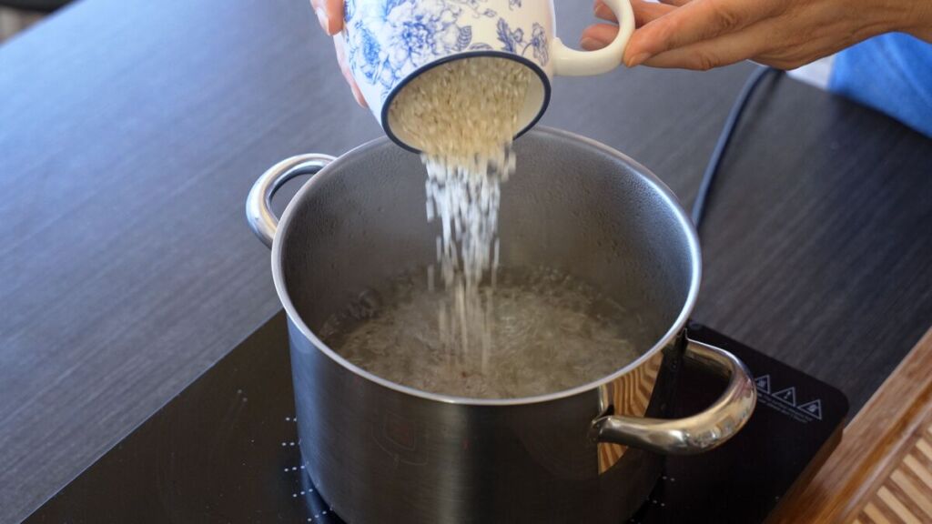 Não lave o arroz antes de cozinhar, o amido superficial é essencial para a cremosidade final.