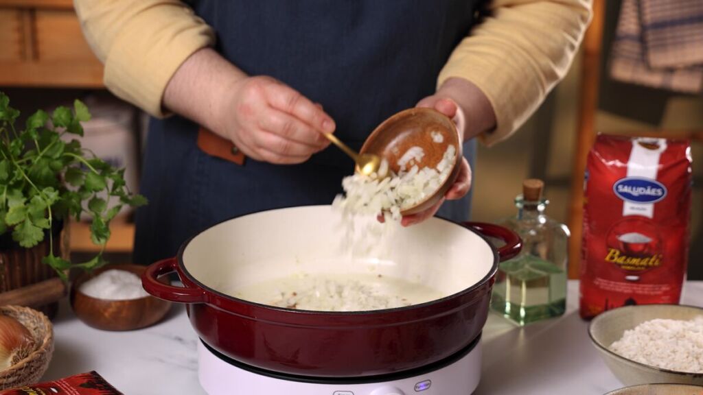 Dica prática: Para poupar tempo, compre cebolas pré-lavadas e pré-picadas no supermercado. Este pequeno detalhe pode fazer toda a diferença quando o tempo é escasso, especialmente após um dia de trabalho intenso. Lembre-se que a qualidade dos ingredientes reflete diretamente no resultado final do seu arroz indiano.