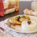 Em lume médio, comece por aquecer um tacho com um fio de azeite. Adicione 200 g de Arroz Saludães Basmati, frite ligeiramente, junte os 400 ml de água, tempere com sal e deixe cozer por 16 minutos. Retire para uma taça e deixe arrefecer.
